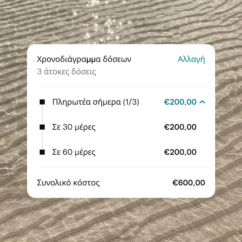- 2η και 3η δόση προγραμματίζονται και πληρώνονται αυτόματα κάθε 30 ημέρες.
