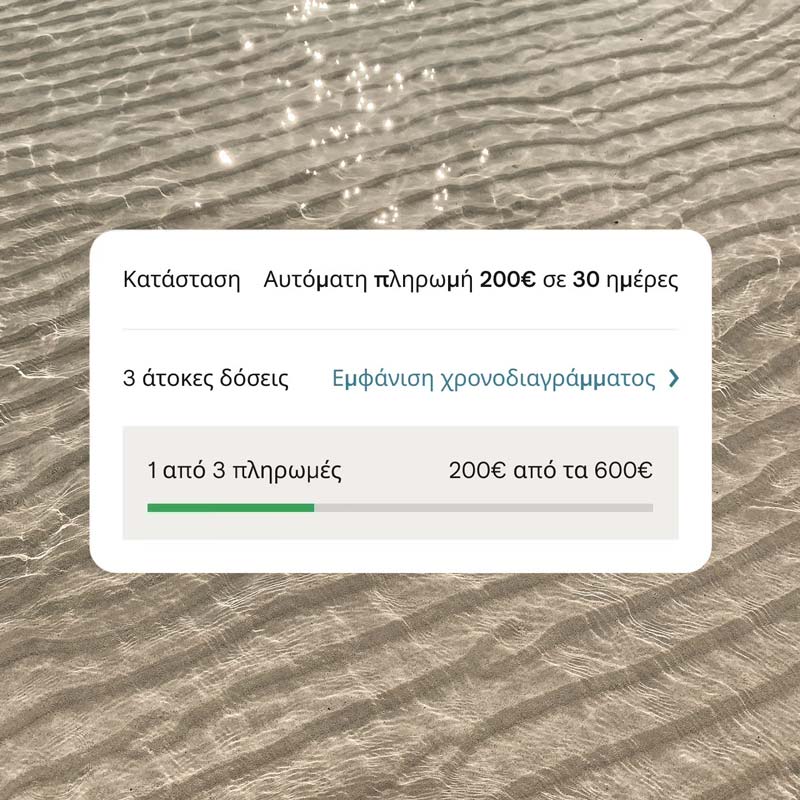 - 1η δόση πληρώνεται με την ολοκλήρωση της παραγγελία σου και αφού συμπληρώσεις όλα τα απαραίτητα στοιχεία.