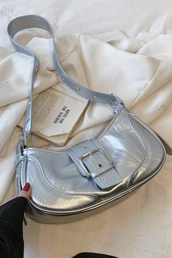 Minimal τσαντάκι ώμου με ρυθμιζόμενο λουράκι, σε ασημί δερματίνη. Διαθέτει φερμουάρ και μαγνητάκι κούμπωμα, καθώς και μια εσωτερική θήκη για καλύτερη οργάνωση. Είναι κομψή και ιδανική για βόλτες.