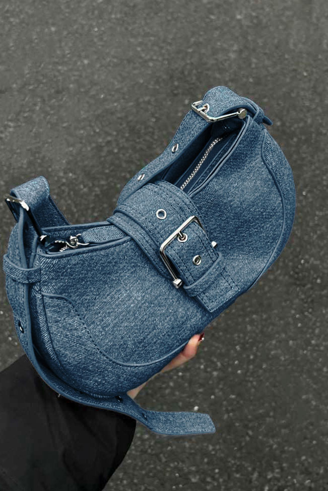Minimal τσαντάκι ώμου με ρυθμιζόμενο λουράκι, μπλου τζιν. Διαθέτει φερμουάρ και μαγνητάκι κούμπωμα, καθώς και μια εσωτερική θήκη για καλύτερη οργάνωση. Είναι κομψή και ιδανική για βόλτες.