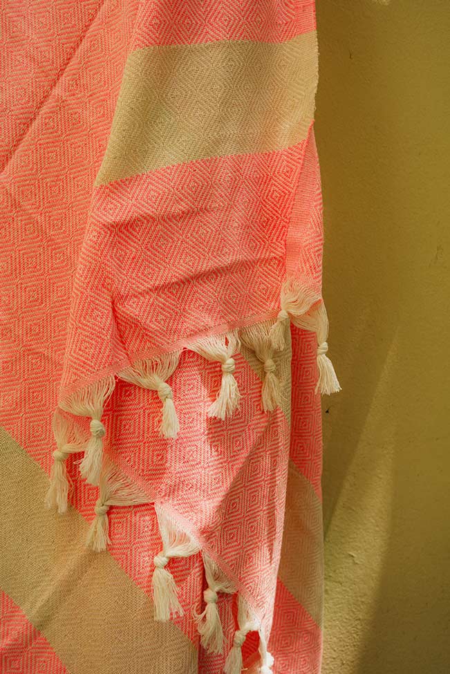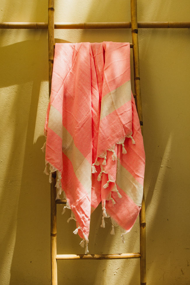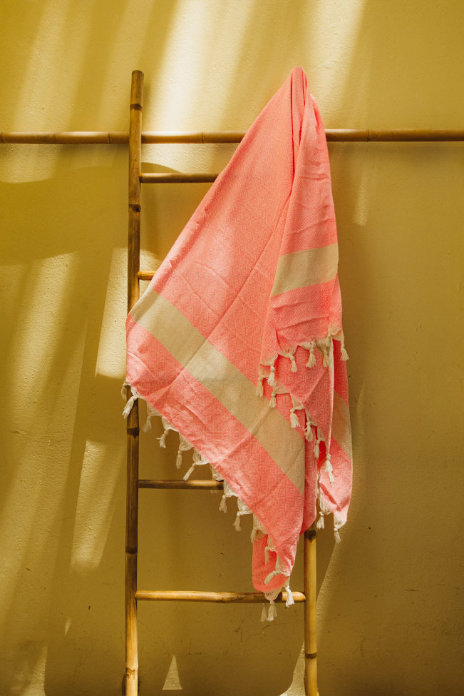 Η πετσέτα hammam pestemal ροζ είναι η ιδανική επιλογή για όσους λατρεύουν το στυλ, τη λειτουργικότητα και τη φωτεινή ενέργεια του καλοκαιριού. Με φρέσκια ροζ απόχρωση και δύο λευκές φαρδιές ρίγες, συνδυάζει το boho αισθητικό στοιχείο με την πρακτικότητα.