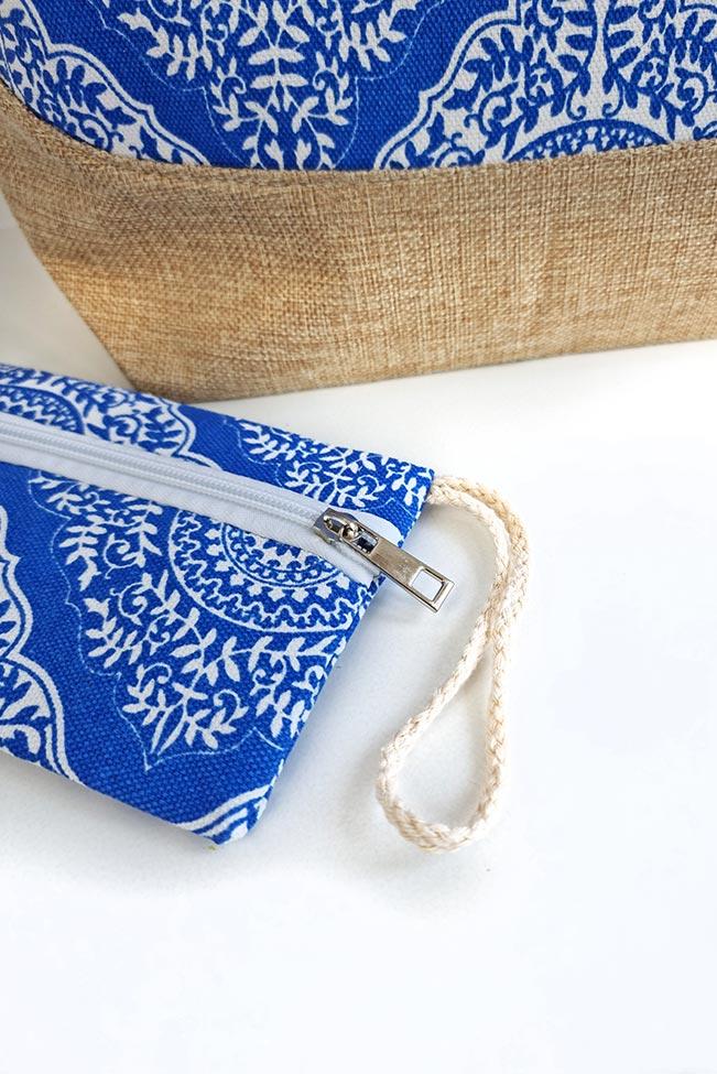 Ο κωδικός περιέχει μια πάνινη τσάντα θαλάσσης και ένα μικρότερο τσαντάκι στο ίδιο χρώμα.