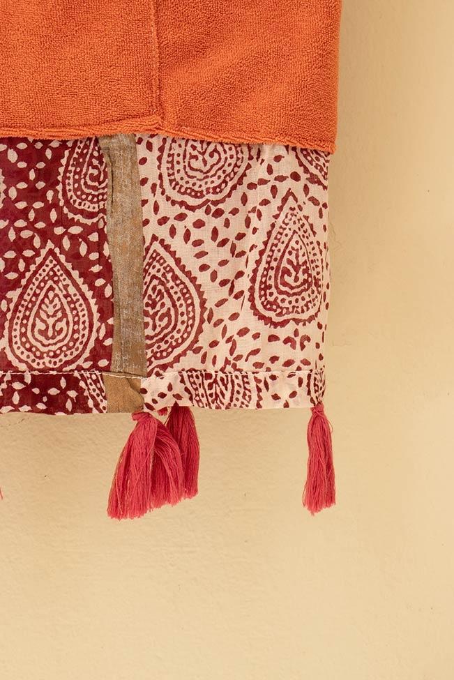 Must have καλοκαιρινή πετσέτα. Πετσέτα παρεό θαλάσσης διπλής όψης με πορτοκαλί απορροφητική επένδυση στη μία πλευρά και paisley σχέδια στην άλλη. Διαθέτει επίσης ένα μικρό τσεπάκι με σκράτς από την μία πλευρά.