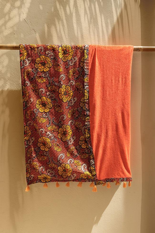 Πετσέτα θαλάσσης floral πορτοκαλί διπλής όψης