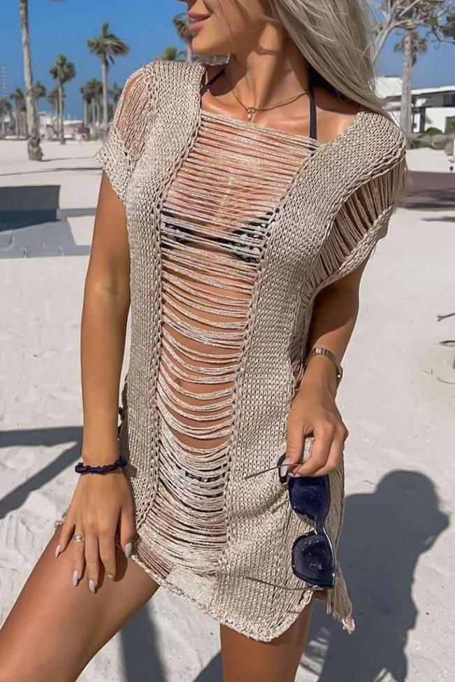 Glam lurex mini φόρεμα παραλίας με σκισίματα μπροστά, πίσω και στο πλάι. Έχει ανοιχτή λαιμόκοψη και είναι Onesize.Καλύπτει απο small μέχρι medium.