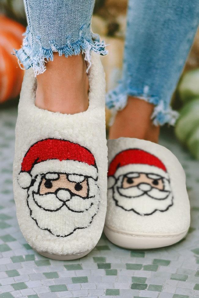 Ζεστά και άνετα παντοφλάκια με santa σχέδιο για τις γιορτινές μέρες των Χριστουγέννων. Το υλικό τους είναι fluffy συνθετικό sherpa τύπου γουνάκι, με σταθερή σόλα.