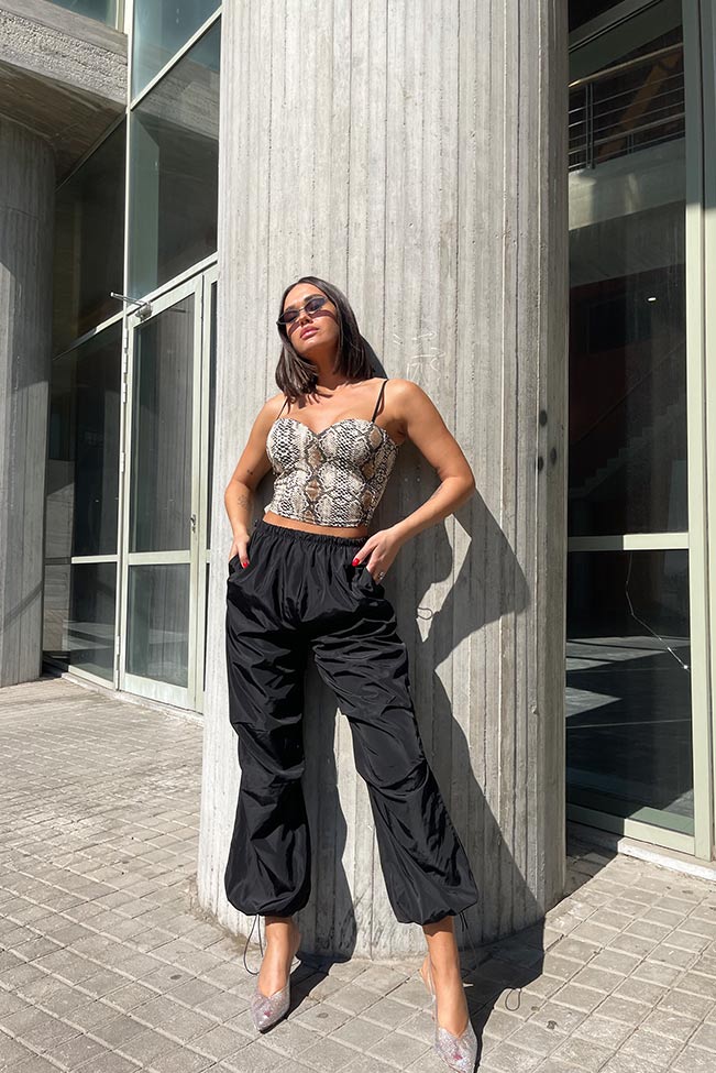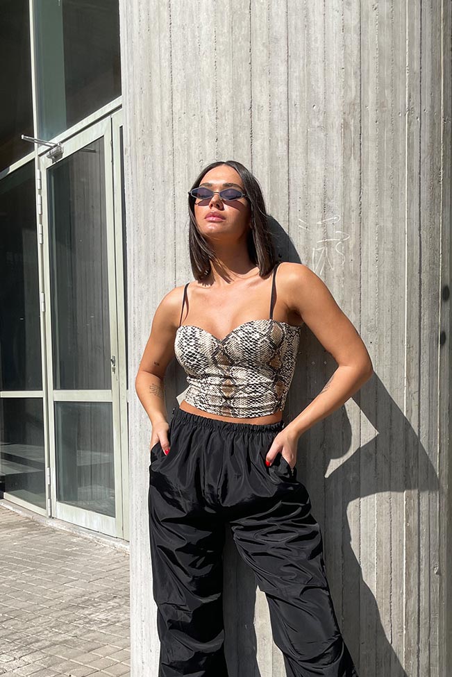 Αναβαθμίστε το στυλ σας με αυτό το εντυπωσιακό snakeskin animal print μπουστάκι και δώστε μια άγρια νότα στις εμφανίσεις σας. Έχει ρυθμιζόμενες τιράντες και μικρή ενίσχυση στο στήθος.