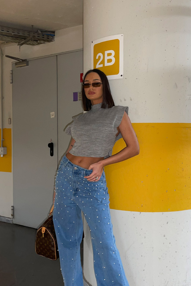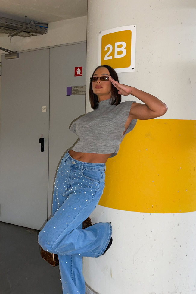 Μπλούζα crop top με άνοιγμα σε γκρι
