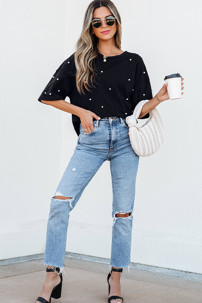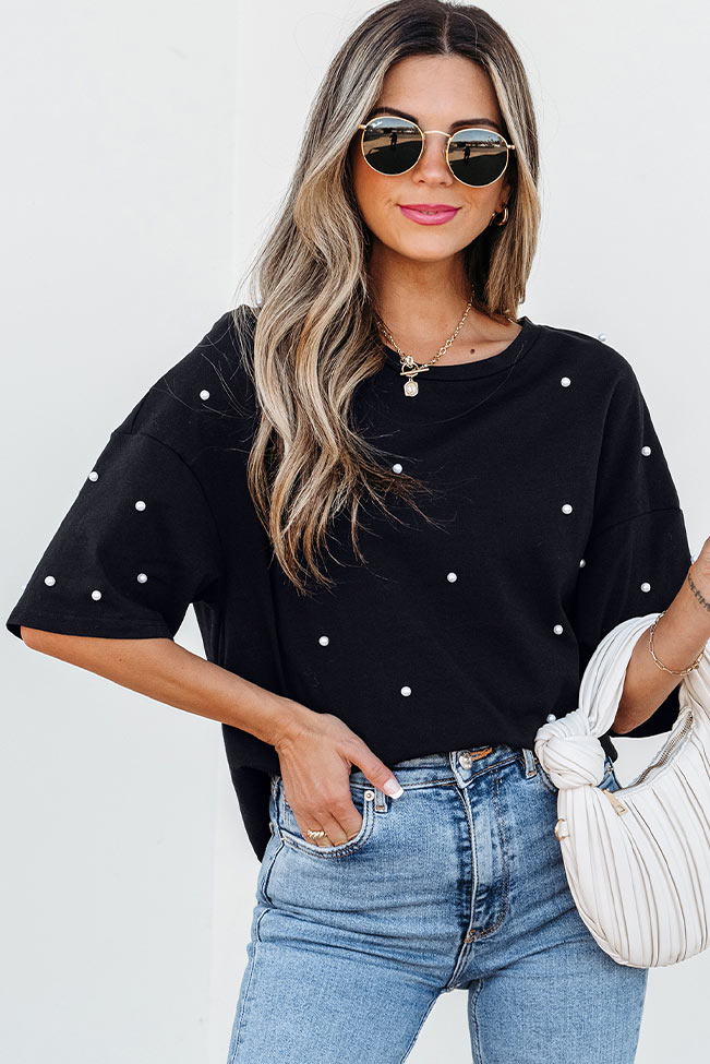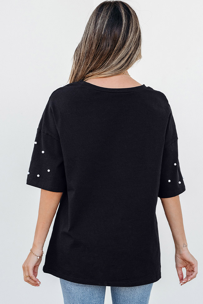 Oversize μαύρο μπλουζάκι με πέρλες