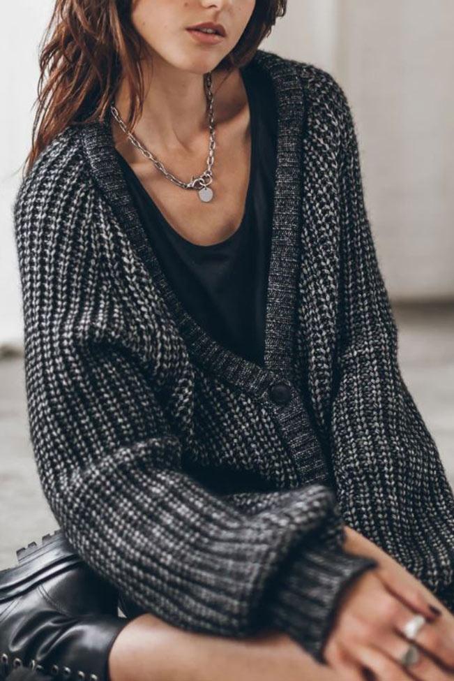 Vintage δίχρωμη χοντρή μακρυμάνικη ζακέτα με στρογγυλά μεγάλα κουμπιά, για άνεση και casual chic στυλ. Ιδανική για κάθε εποχή, αυτή η ζακέτα θα γίνει ένα αγαπημένο κομμάτι στην γκαρνταρόμπα σας.