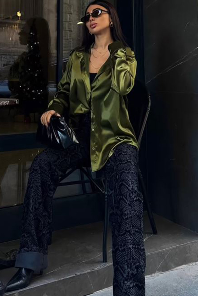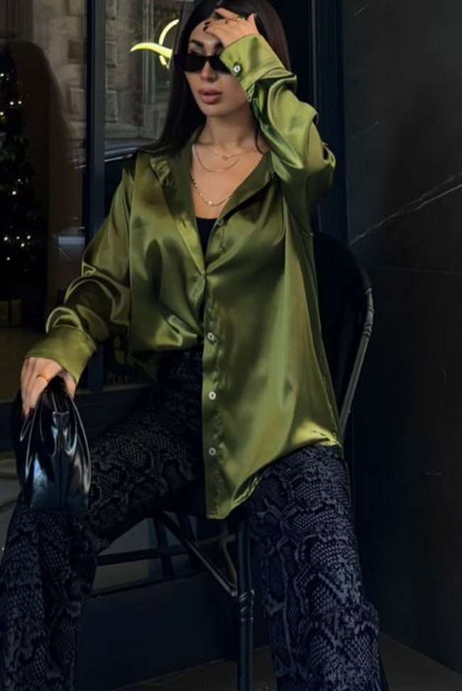 Σατέν πουκάμισο με γιακά και κουμπιά κατά μήκος σε basic χρώματα. Με την απαλή του υφή και την λαμπερή του όψη, αυτό το πουκάμισο θα σας κάνει να νιώθετε κομψή και άνετη κάθε φορά που το φοράτε.