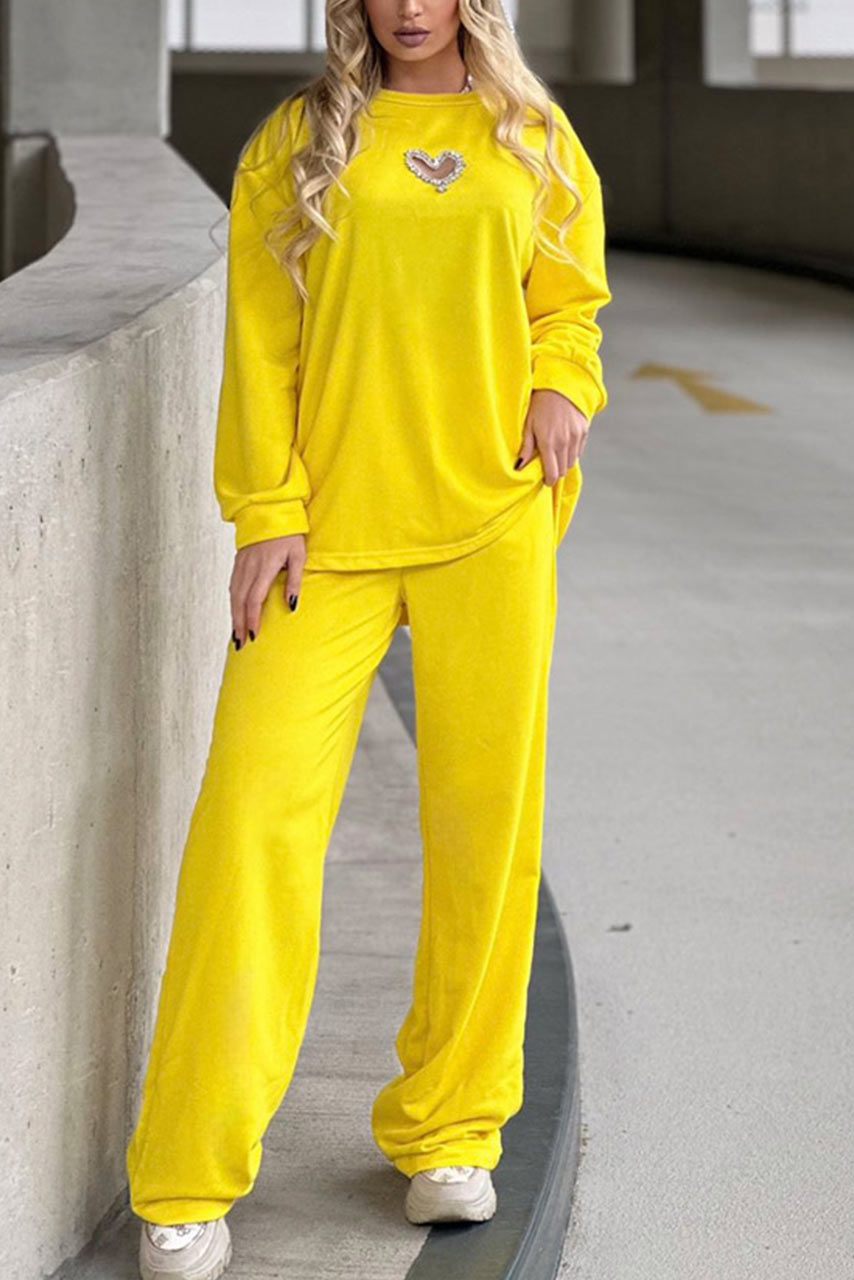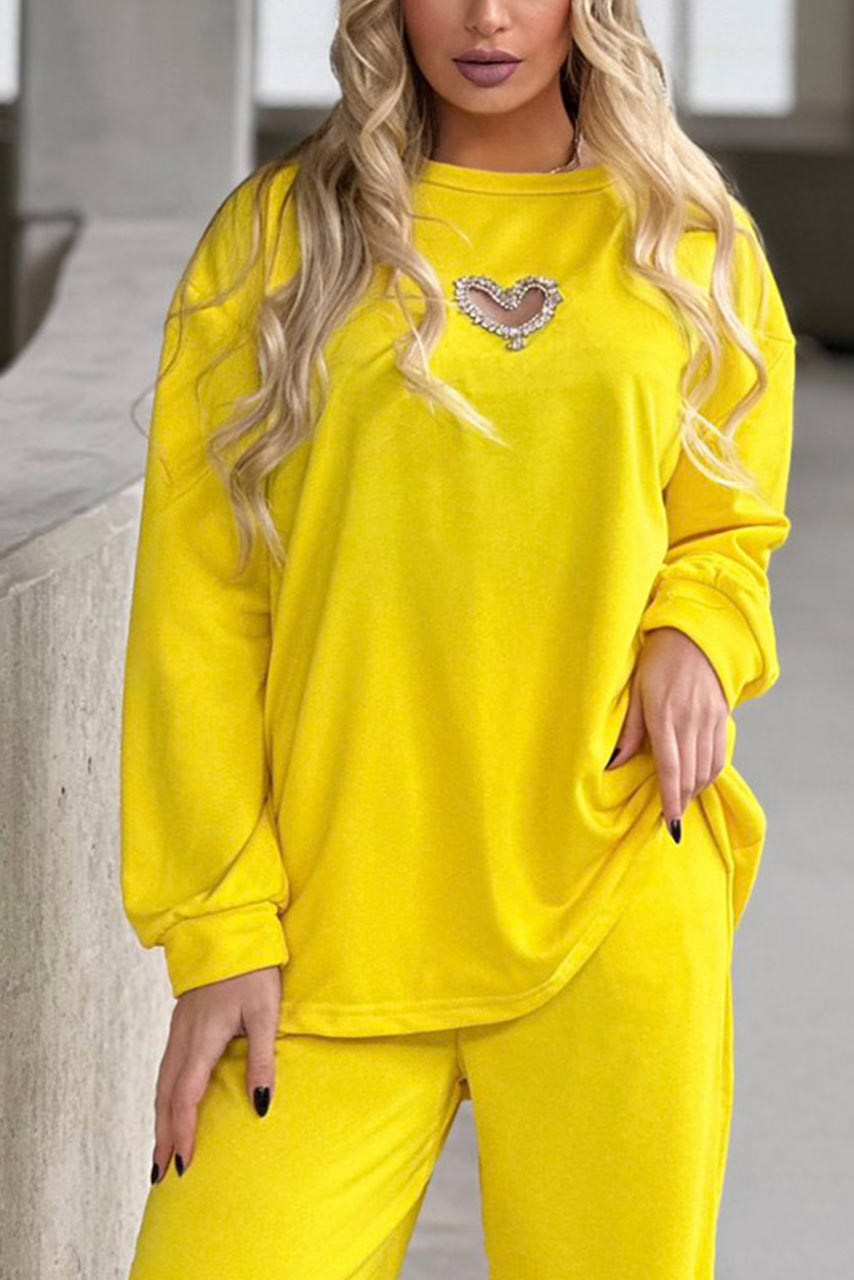 • Τύπος: Σετ παντελόνι βελούρ | Μπλούζα βελούρ με άνοιγμα καρδιά κόσμημα