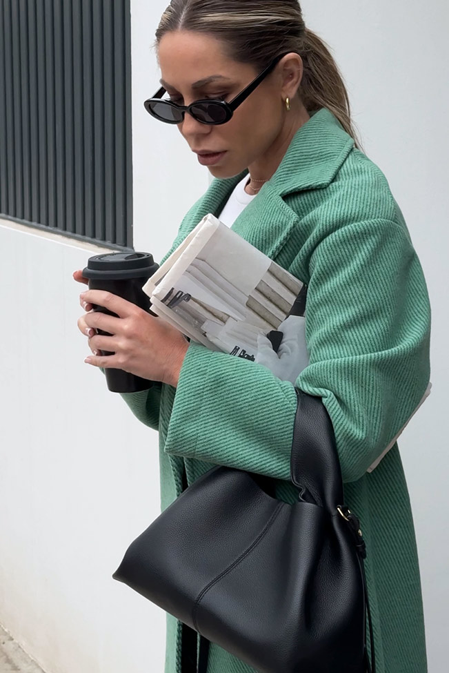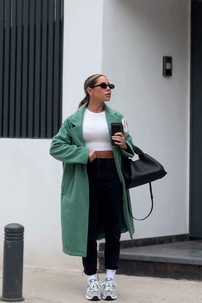 Pop n chic πράσινο casual μάλλινο παλτό σε πράσινη απόχρωση, με μεγάλο γιακά και μεγάλες τσέπες.