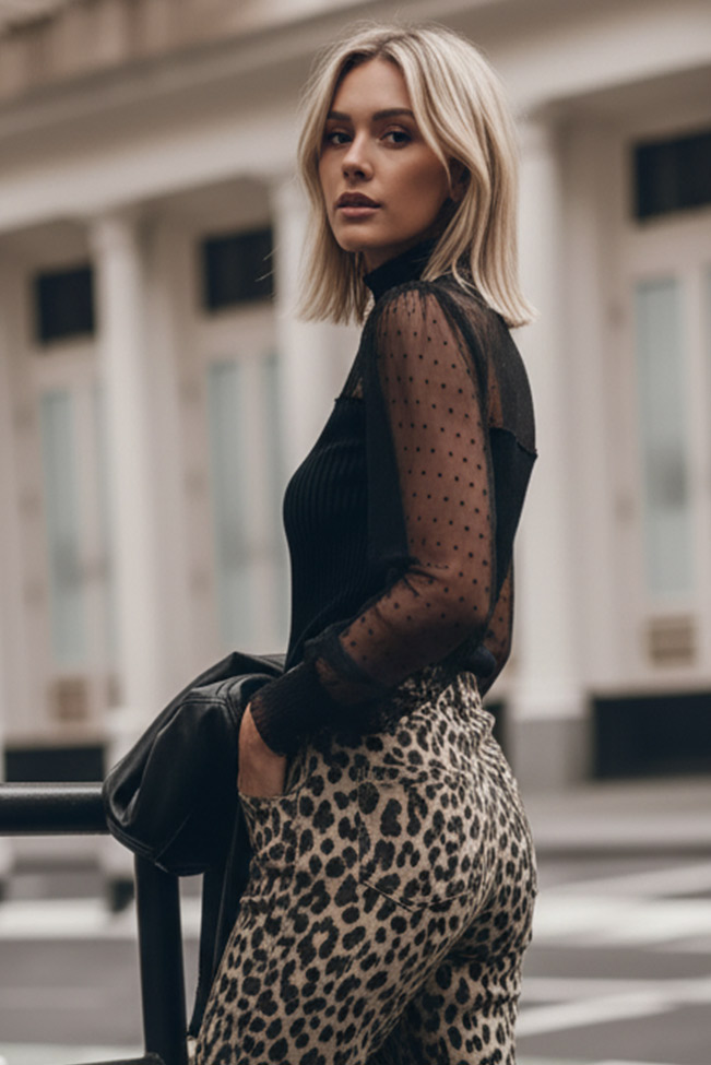 Το διαφανές μαύρο πουά κορμάκι είναι η ιδανική επιλογή για γυναίκες που αγαπούν το κομψό, σέξι και ταυτόχρονα διαχρονικό στυλ. Το σχέδιό του, με λεπτά πουά και διαφάνειες, αγκαλιάζει αρμονικά το σώμα και αναδεικνύει φυσικά τη θηλυκότητα, χωρίς υπερβολή.