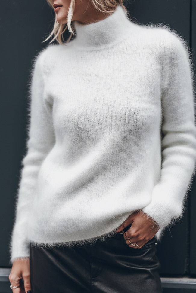 Το fluffy mohair πουλόβερ σε λευκό είναι το κομμάτι που δίνει άμεσα στιλ και άνεση σε κάθε χειμερινό outfit. Η απαλή υφή του αγκαλιάζει το σώμα και δημιουργεί μια αίσθηση ζεστασιάς που σε συνοδεύει από το πρωί μέχρι το βράδυ. Παράλληλα, το διαχρονικό λευκό χρώμα προσφέρει καθαρή, minimal αισθητική που συνδυάζεται εύκολα με κάθε look.