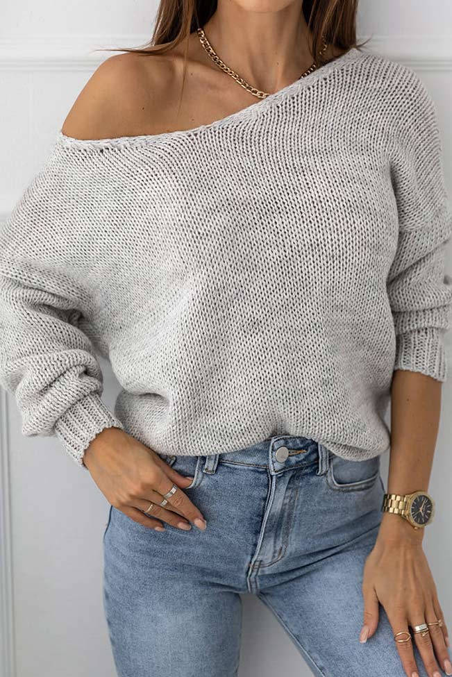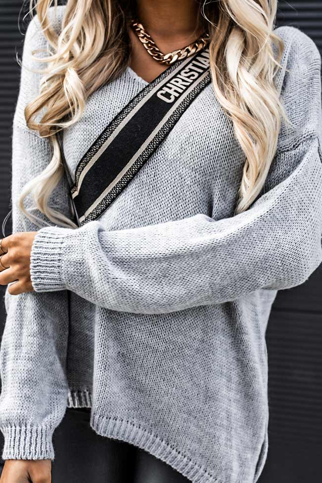 Το γκρι πλεκτό πουλόβερ είναι η ιδανική επιλογή για γυναίκες που αγαπούν το minimal, cozy στυλ. Το πλεκτό πουλόβερ έχει χαλαρή εφαρμογή και απαλή υφή. Αγκαλιάζει το σώμα απαλά και προσφέρει άνεση από το πρωί μέχρι το βράδυ. Το V λαιμόκοψο του πλεκτού το κάνει ευέλικτο για κάθε περίσταση.