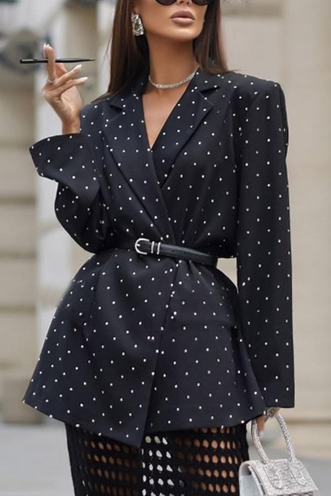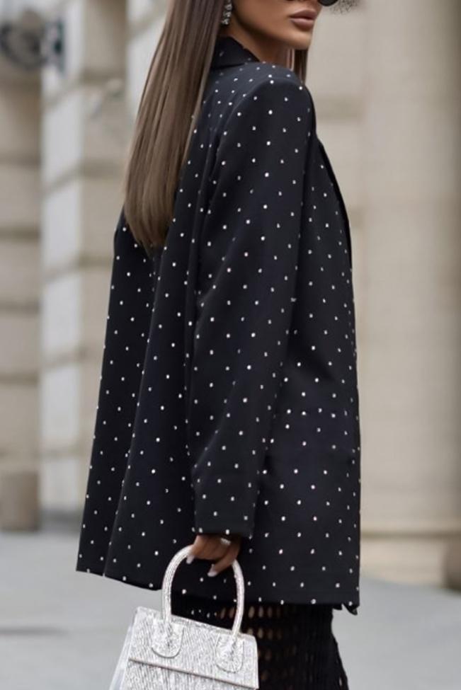 Polka dot σακάκι σε street casual style και μαύρο χρώμα. Ταιριάζει με total black, αλλά και χρωματικούς συνδυασμούς και έχει μεσάτη εφαρμογή. Είναι Onesize το νουμεράκι του και καλύπτει από Small μέχρι Large.