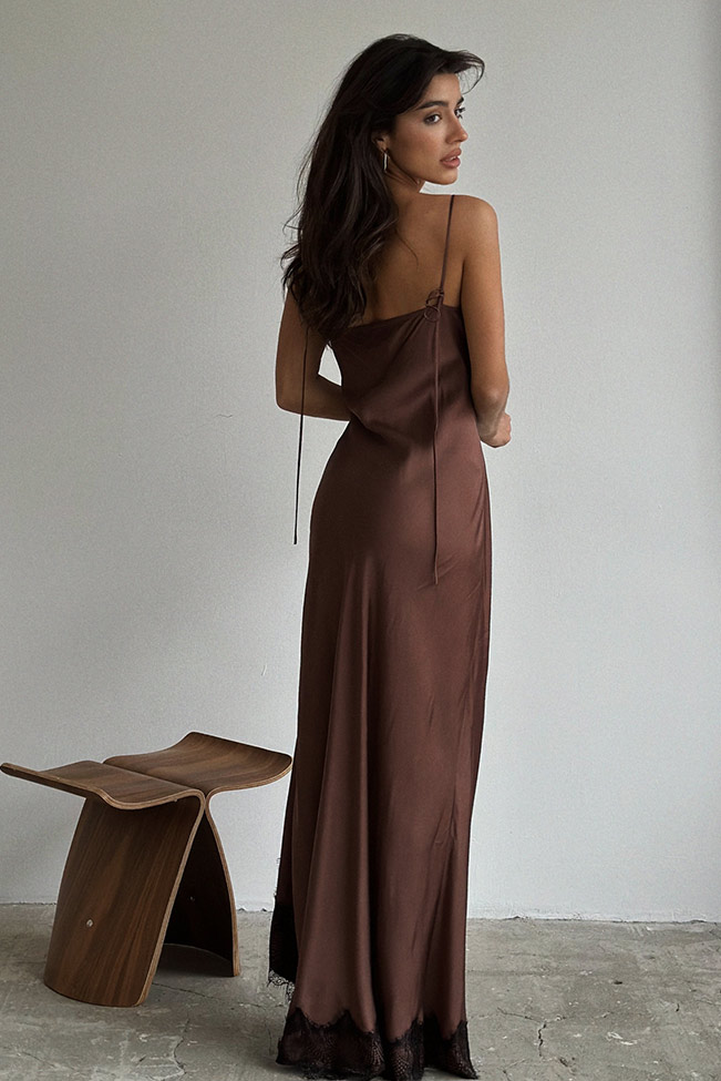 Το καφέ σατέν φόρεμα με δαντέλα διαθέτει γραμμή που κολακεύει κάθε σιλουέτα, προσφέροντας άνεση και κομψότητα. Επιπρόσθετα, η λεπτομέρεια της δαντέλας στο μπούστο και στο κάτω μέρος χαρίζει μια αίσθηση πολυτέλειας, χωρίς να είναι υπερβολική. Έτσι, μπορείς να το συνδυάσεις με ψηλοτάκουνα ή mules για πιο glam αποτέλεσμα, ή ακόμη και με λεπτά σανδάλια για πιο minimal chic στυλ.