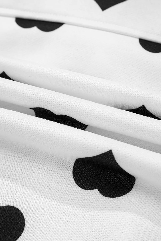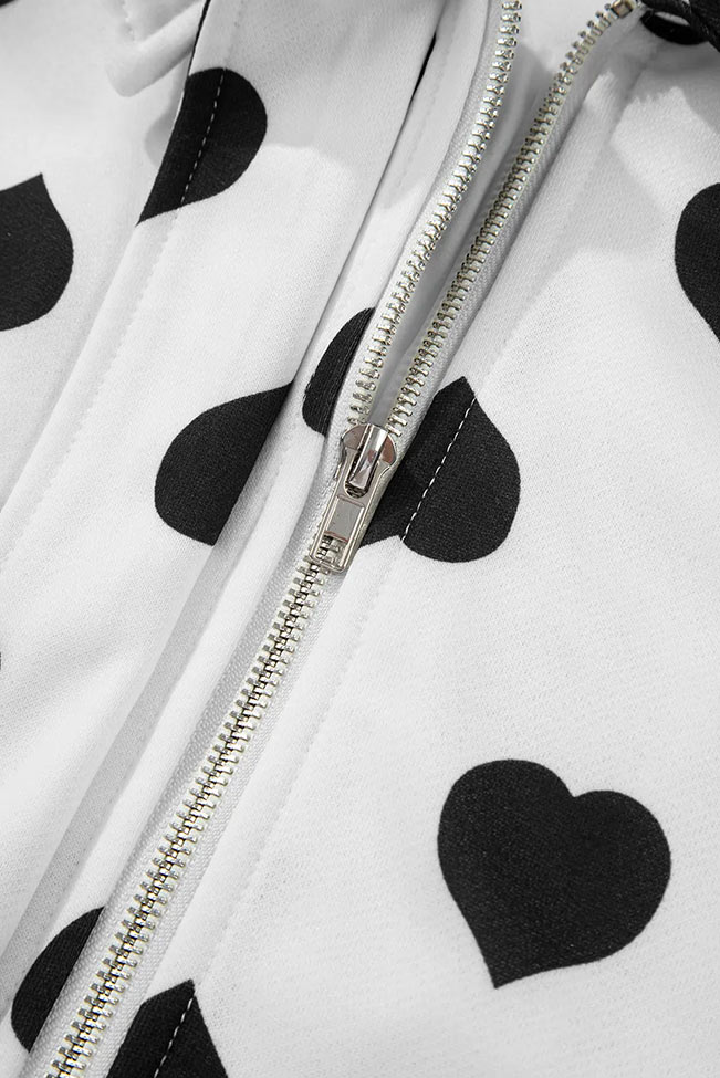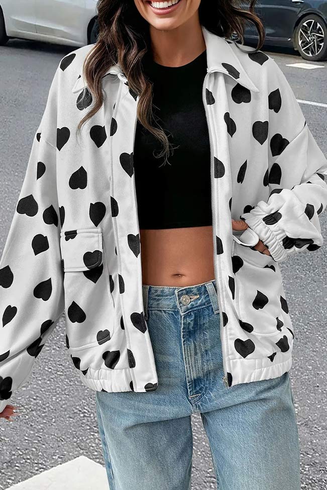 Λευκή ζακέτα με μαύρες καρδιές και τσέπες