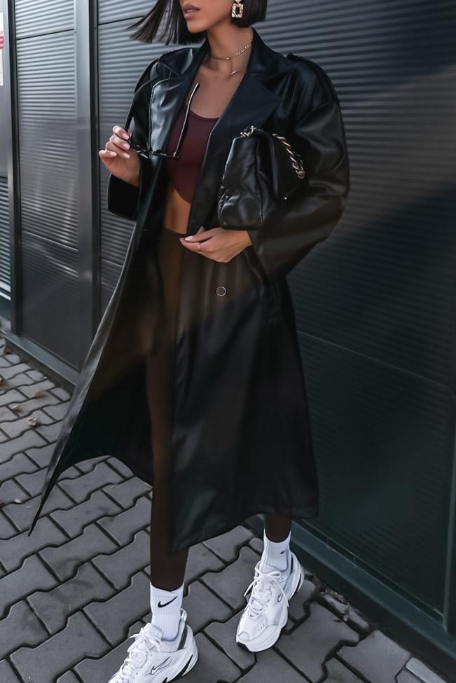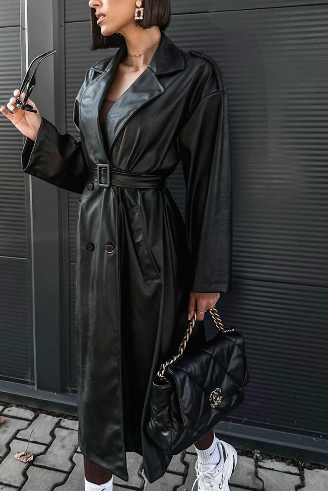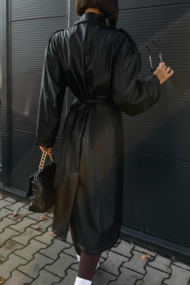 Μακρύ δερμάτινο πανωφόρι με ζωνάκι στην μέση σε μια κλασική και διαχρονική γραμμή που προσφέρει άνεση και στυλ.