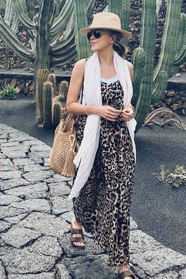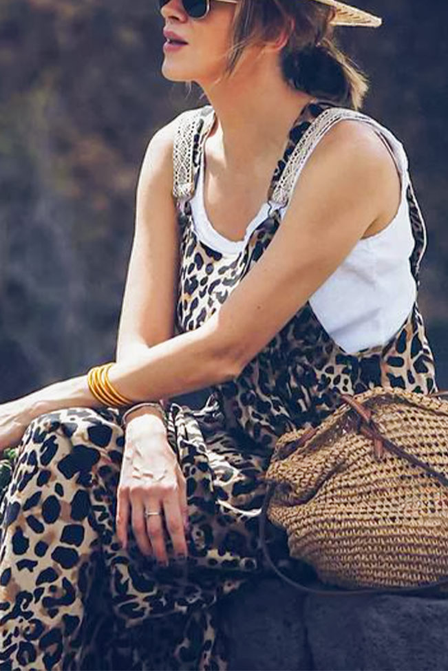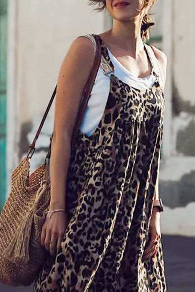 Λέοπαρ σαλοπέτα φόρεμα maxi, σε ουδέτερη trendy μπεζ απόχρωση και άνετη γραμμή. Casual, εντυπωσιακό και άνετο, τέλειο για τις ζεστές καλοκαιρινές μέρες.