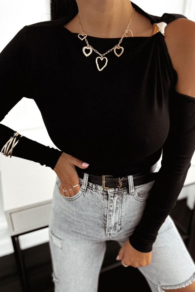 Μαύρη ασύμμετρη μπλούζα με ανοιχτό ώμο