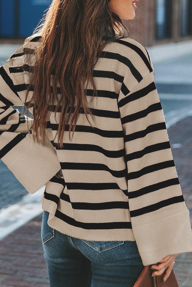 Πλεκτό σε χαλαρό στύλ με μικρό ζιβάγκο και μακριά φαρδιά μανίκια με σκίσιμο. Έχει άνετη γραμμή και βγαίνει από Small μέχρι 2XL.