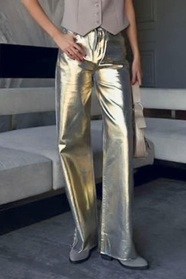 Jean σε κανονική γραμμή με τσέπες και φερμουάρ σε metallic αποχρώσεις του ασημί και του χρυσού. Είναι σταθερό το ύφασμα και έχει κανονική εφαρμογή. Βγαίνει από Small νουμεράκι μέχρι Large.