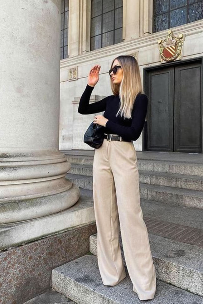 Office style παντελόνι μπεζ σε α γραμμή