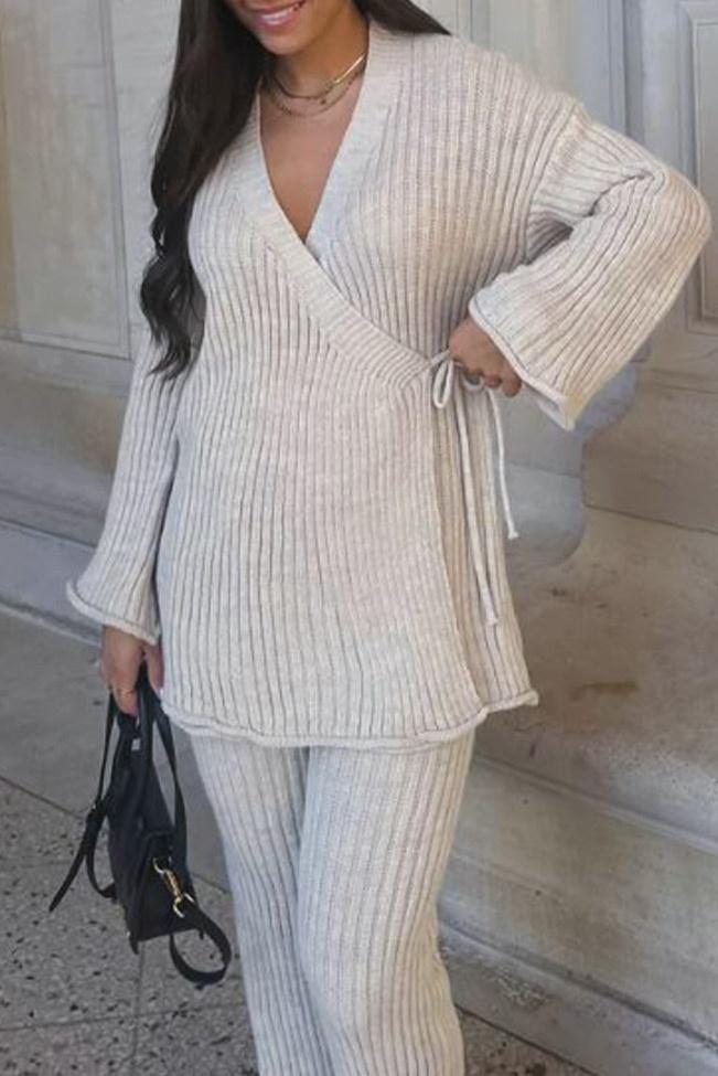 Ivory σετ πλεκτό παντελόνι με κρουαζέ τοπ