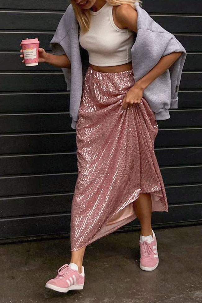 Sequin glam maxi μαύρη φούστα με ελαστικό λάστιχο στην μέση. Διατίθεται σε onesize νουμεράκι.