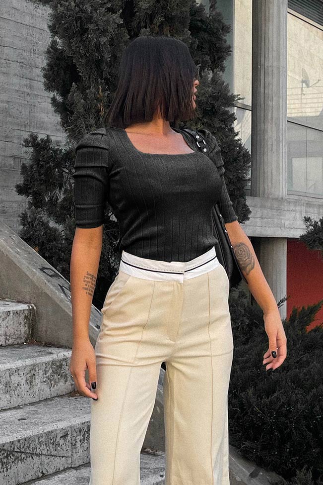 - Τύπος: Ελαστικό top με square λαιμόκοψη | Ελαφρώς φουσκωτό στους ώμους