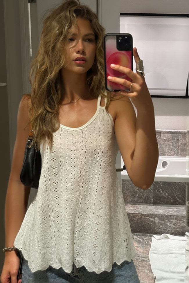Μοναδικό λευκό cami top με ethnic pattern κεντήματα για casual extra trendy looks.