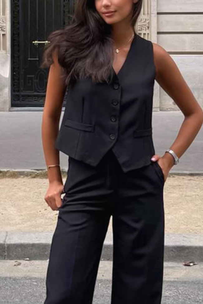 Σετ κουστούμι παντελόνι με γιλέκο σε μαύρο