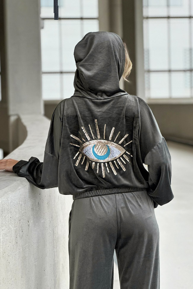 Velvet grey σετ βελούρ φόρμα με μάτι