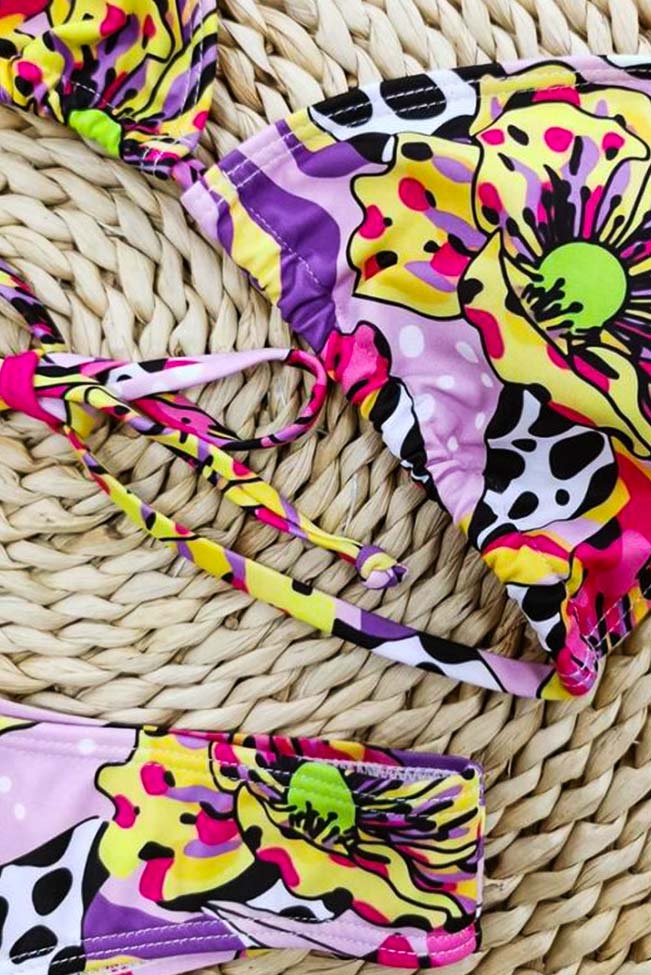 Flower mess πολύχρωμο μπικίνι σετ με κορδονάκια σε κανονική γραμμή για funky εμφανίσεις.