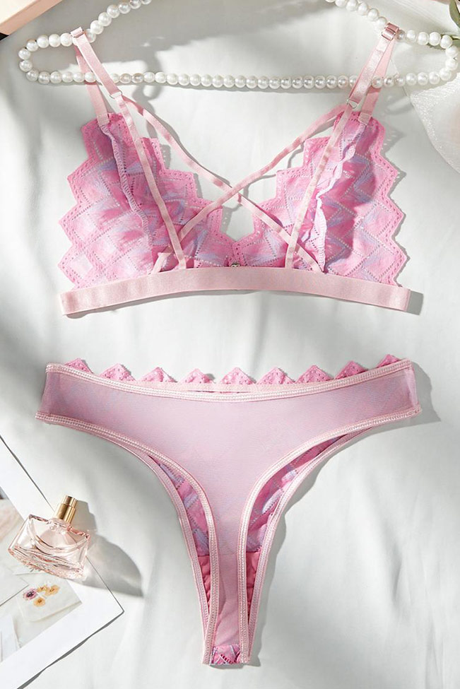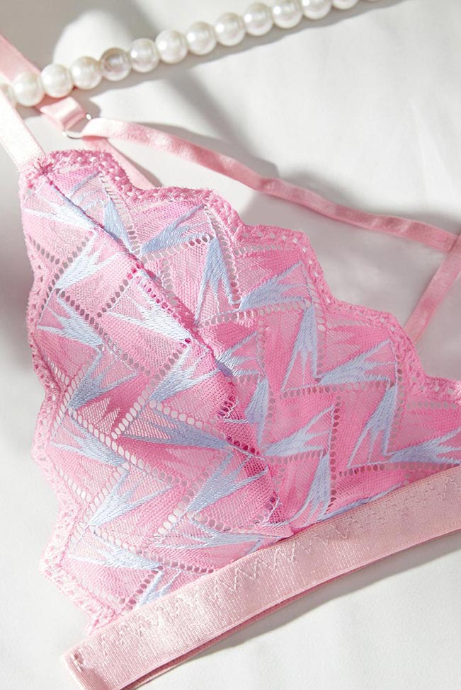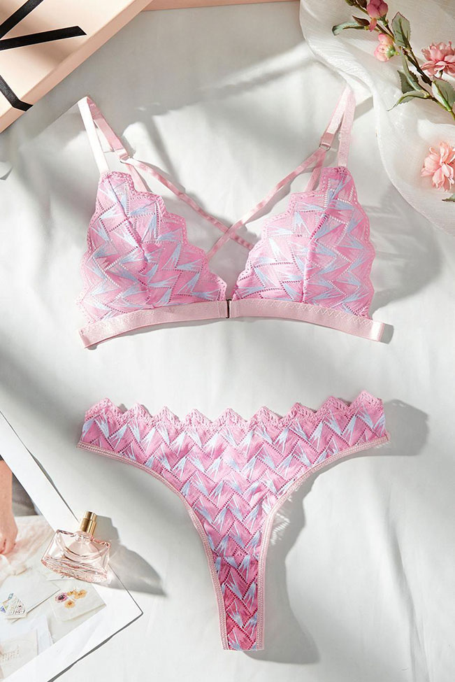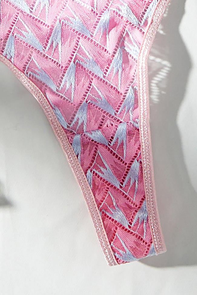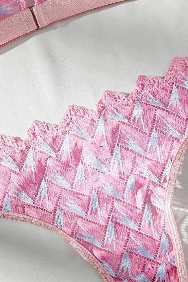 Σετ εσωρούχων με κεντημένα γεωμετρικά σχέδια σε ροζ