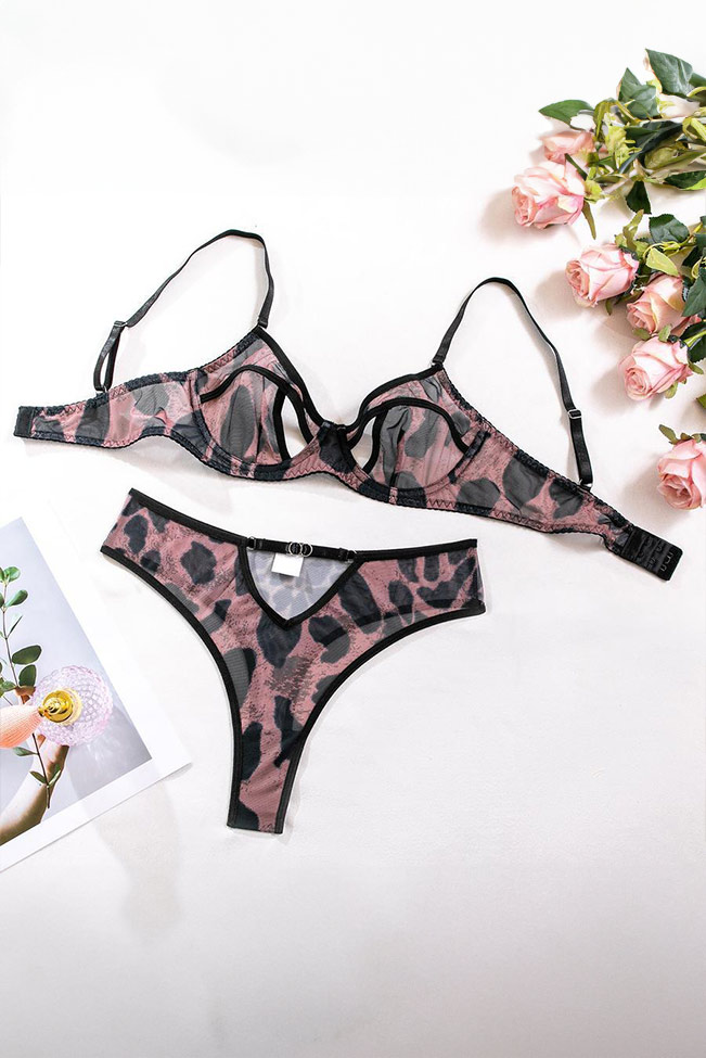 Ψηλόμεσο σετ εσωρούχων λεοπάρ print