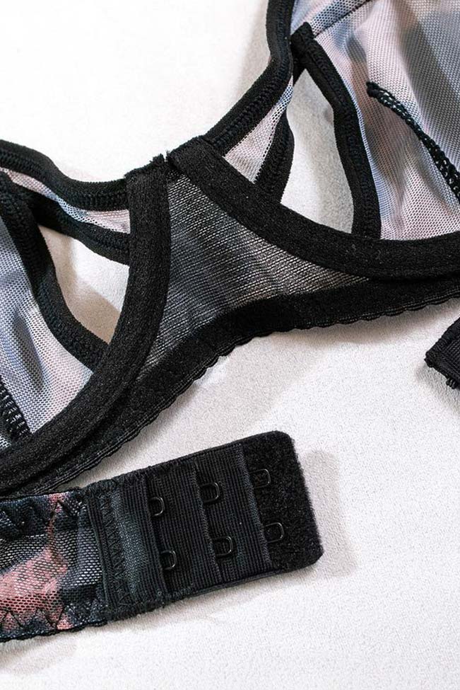 Cut out style σετ εσωρούχων με mesh bustier και bottoms με κούμπωμα στο πίσω μέρος. Έχει κανονική εφαρμογή και βγαίνει από Small νουμεράκι μέχρι Large.