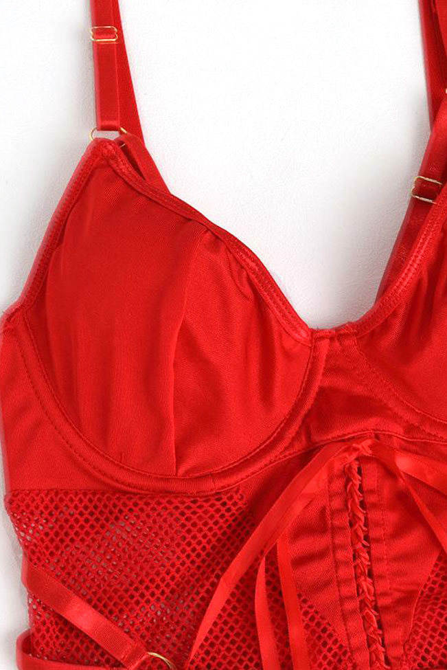 Κόκκινο σετ εσωρούχων σε στυλ κορσέ
