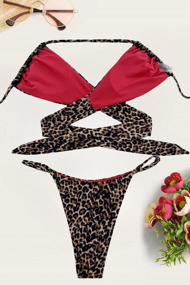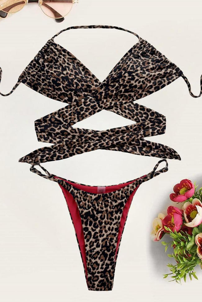 Rio μπικίνι λεοπάρ με χιαστί δεσίματα