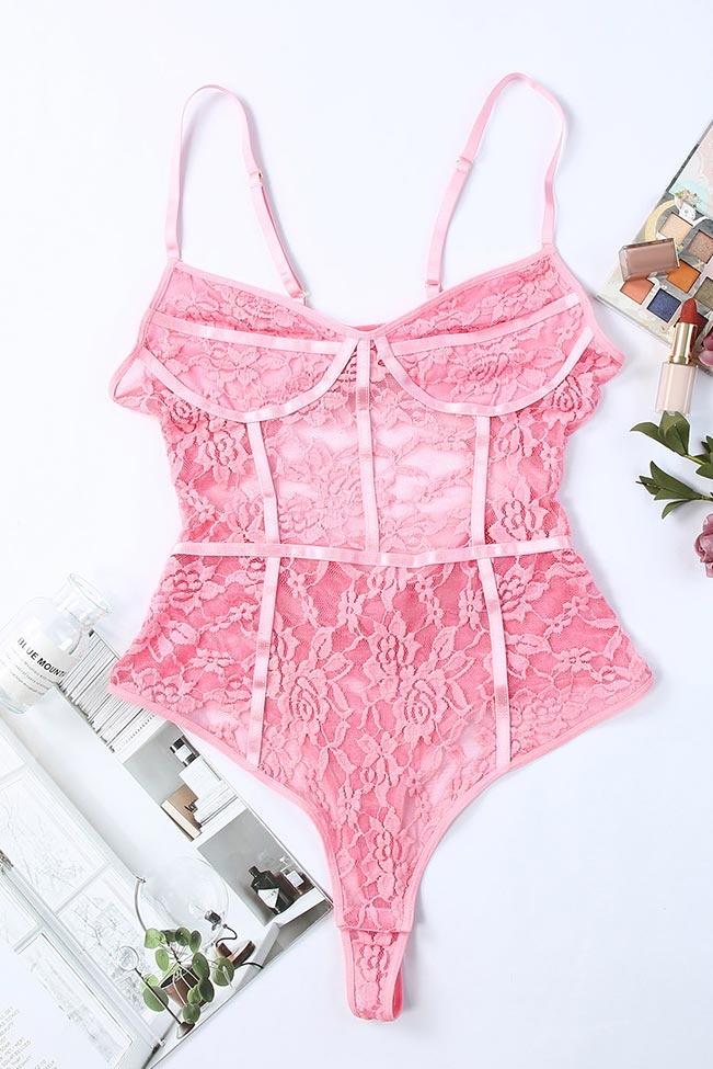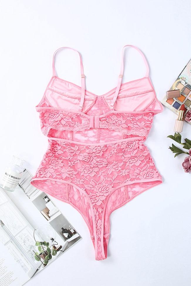 Vintage ολόσωμο bodysuit με δαντέλα, retro cut σε ροζ, άκρως ρομαντική απόχρωση.