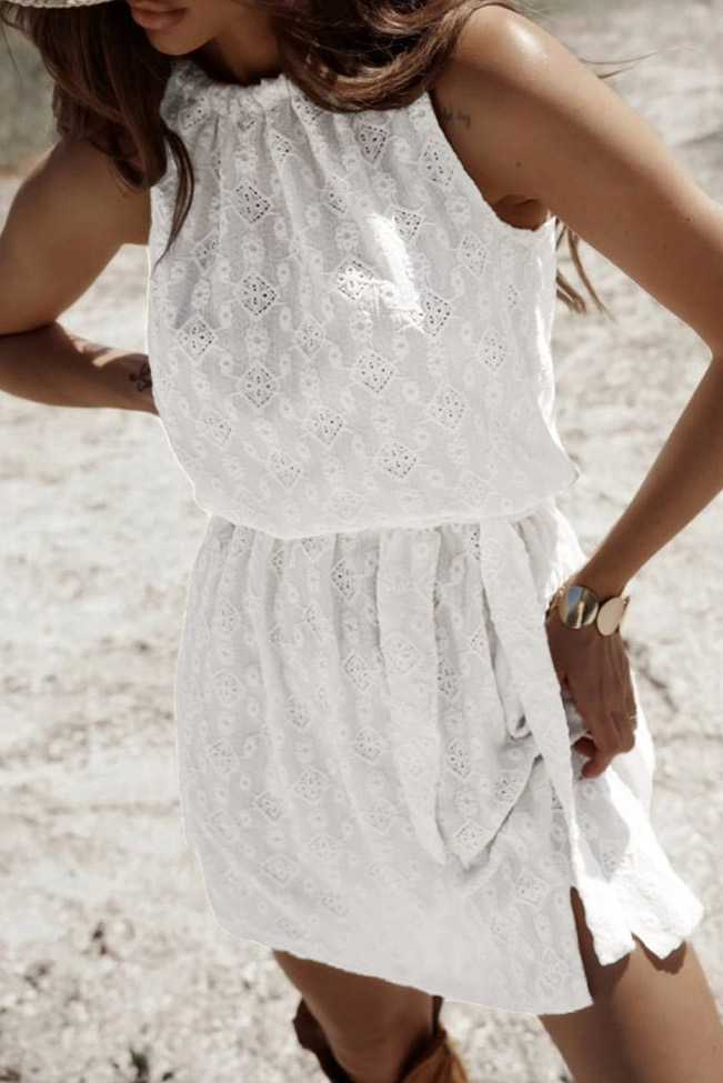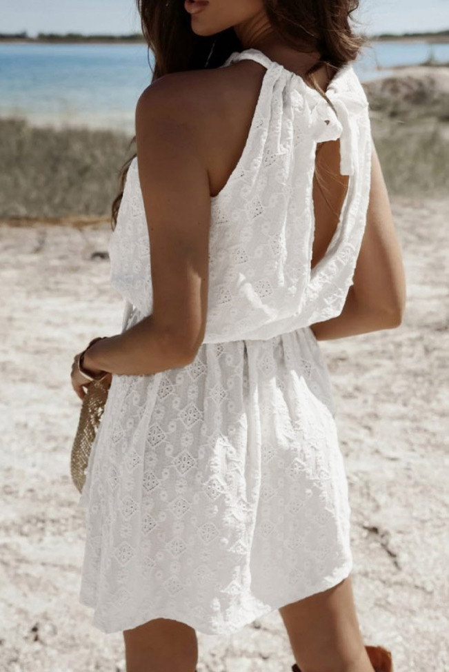 Μίνι φόρεμα halterneck διάτρητο με ζωνάκι