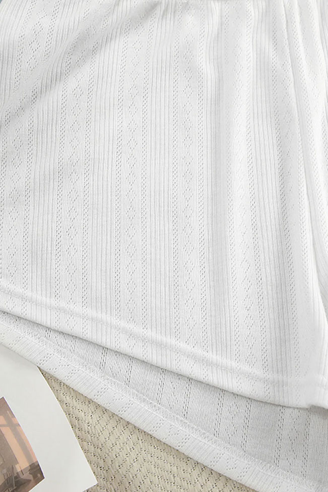 Sicilia λευκό ανάλαφρο loungewear τοπ με σορτσ με ανάγλυφα σχέδια.Το σετ είναι εξαιρετικό για σαββατοκύριακα στο κρεβάτι χωρίς δεύτερη σκέψη.