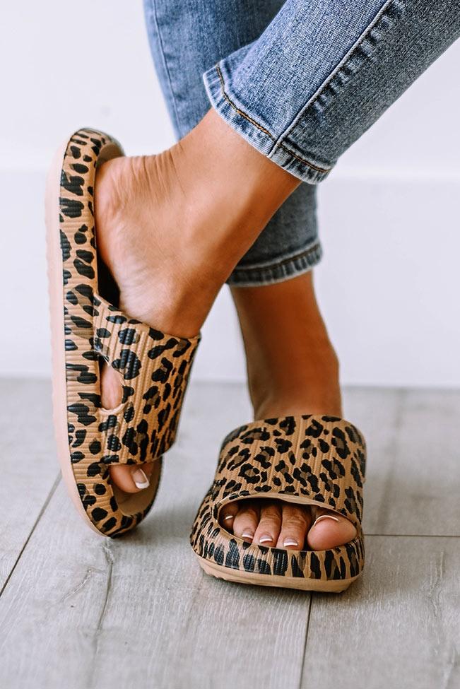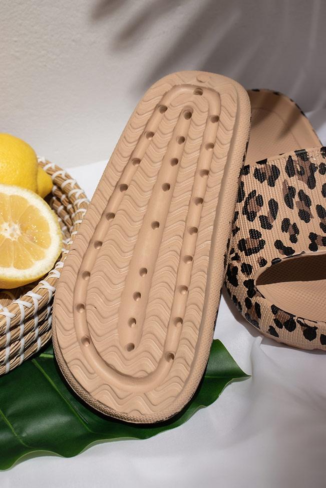 Γυναικεία σούπερ άνετη slider παντόφλα από flexpand υλικό, σε animal print σχέδιο σε μπεζ απόχρωση. Η παντόφλα είναι αδιάβροχη και πολύ άνετη στο περπάτημα. Κατάλληλη για την παραλία και για τις βόλτες.