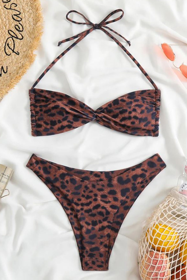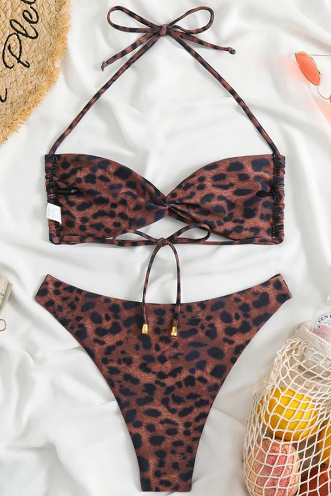 Animal print καφέ μπικίνι σετ