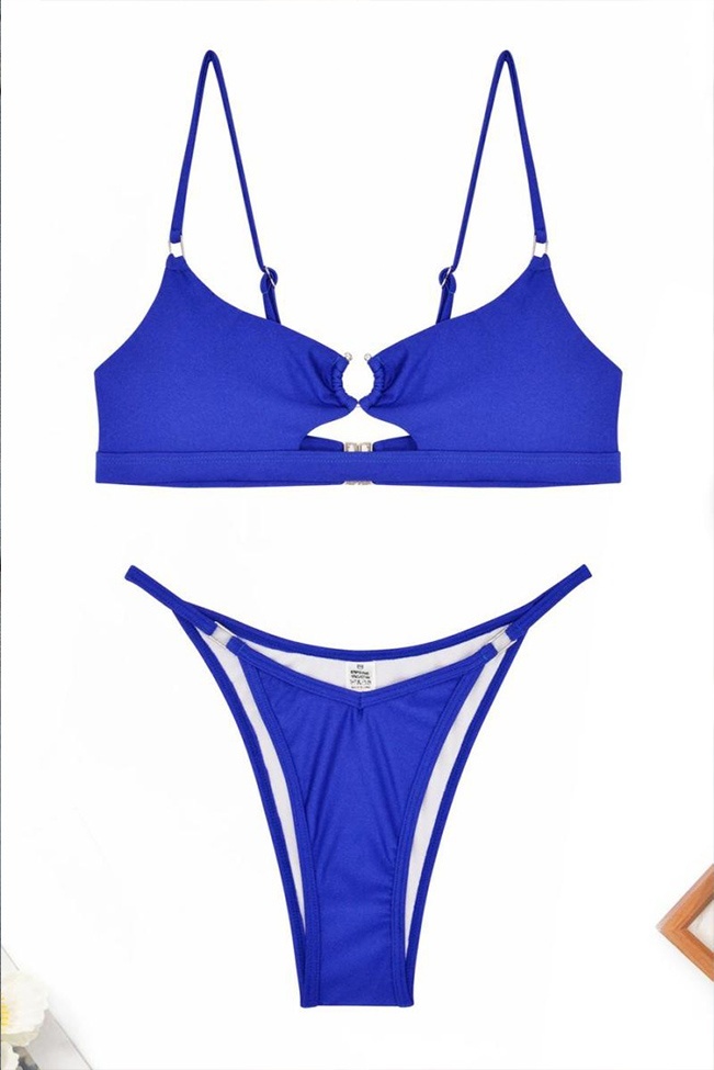 Μονόχρωμο μαγιό με μπουστάκι σε αθλητικό στυλ. Έχει κρίκο και cut out, με παρτό σλιπ σε μοναδικό μπλε ηλεκτρικ χρώμα.