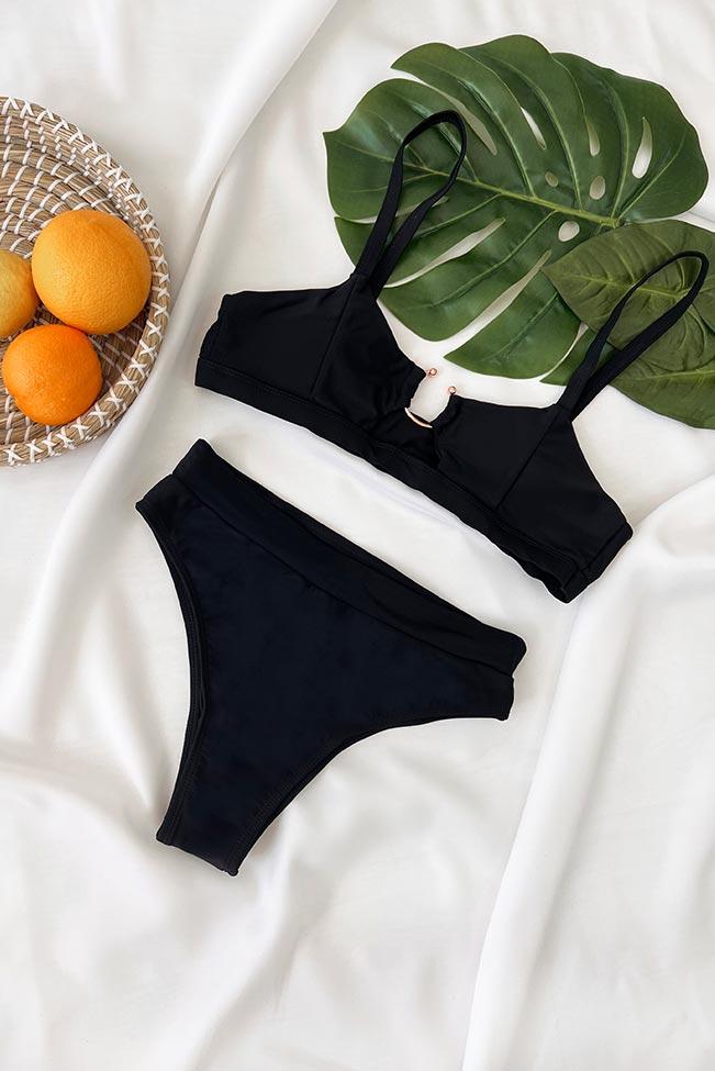 Solid illusion μαύρο μονόχρωμο μπικίνι με λεπτομέρεια κρίκο on top.