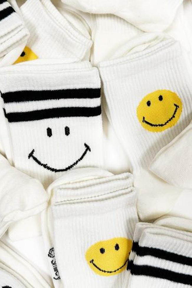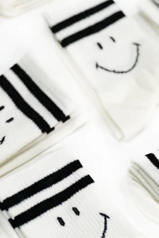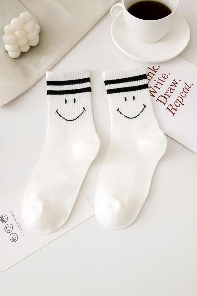 Κάλτσες ψηλές σε άσπρο χρώμα με smiley and stripes print. Η εφαρμογή τους είναι one size και καλύπτουν μεγέθη από 35 έως 39.