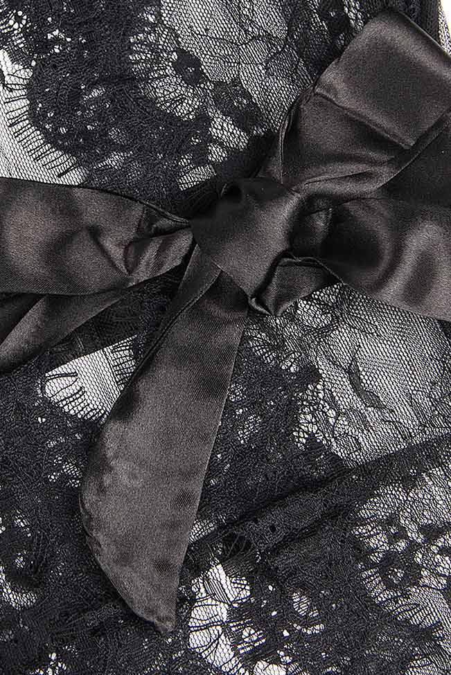 Το απόλυτο lacey look για το σπίτι, μαύρο διαχρονικό robe διάφανο νεγκλιζέ διακοσμημένο με μαύρη δαντέλα και μαύρο thong.